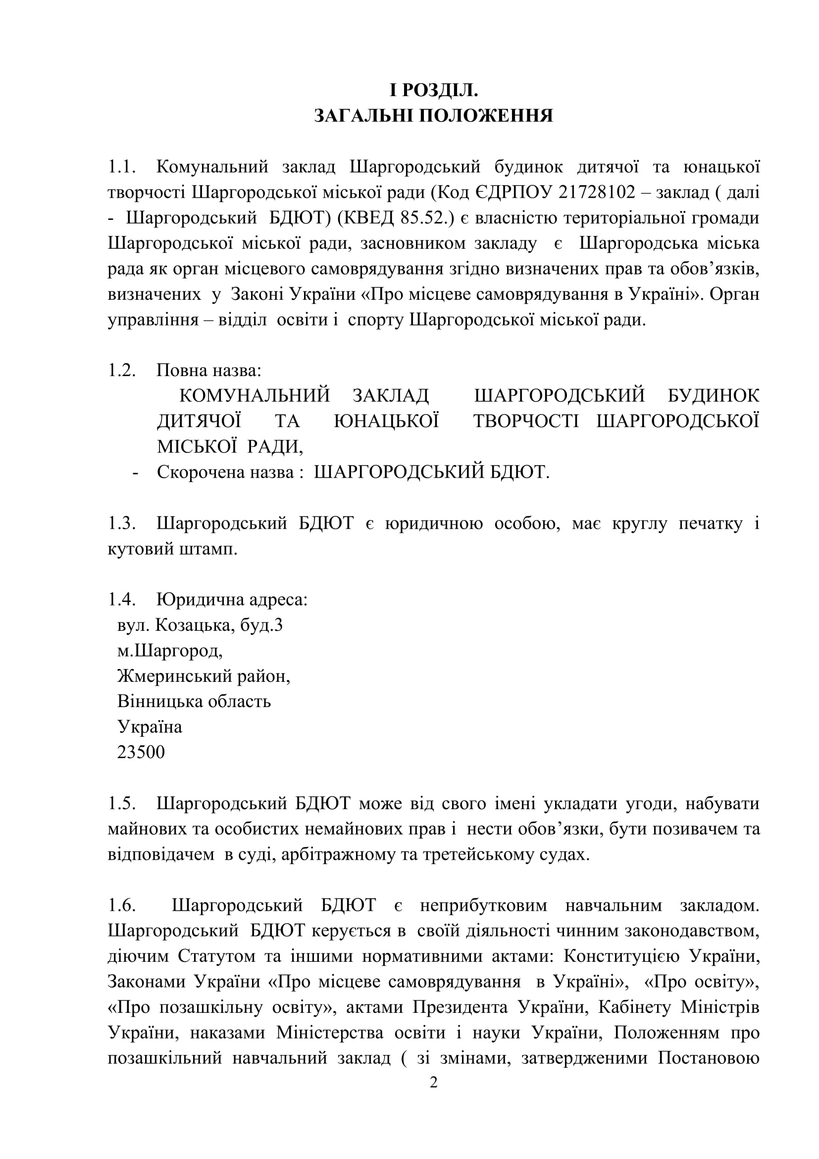 Адреса: м. Шаргород, вул. Козацька, 3